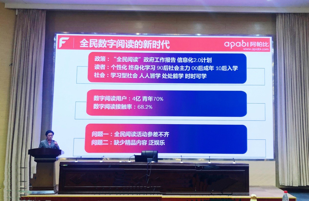 在本次會議上,方正阿帕比經營中心魏丕發表了《新時代的全民數字閱讀——“讀+”計劃》的主題演講。